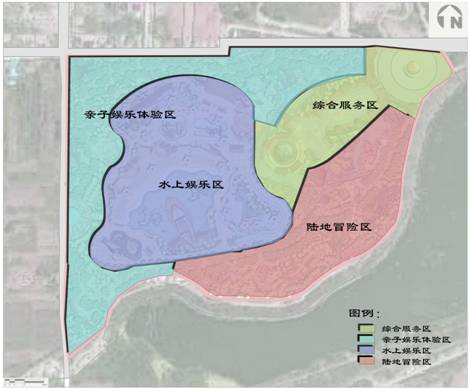 2.3功能分區:根據項目地的場地情況、開發現狀、發展思路等,確定功能分區為:綜合服務區——仙聚蓬萊、親子娛樂體驗區——八寶樂園、水上娛樂區——八仙戲水、陸地冒險區——龍宮歷險。