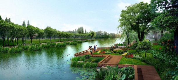 ● 以自然式手法打造景觀岸線,結(jié)合親水平臺(tái)、木質(zhì)廊道等營(yíng)造生態(tài)和諧的濱水景觀。
