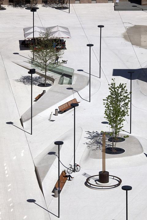 這是位于奧地利蒂羅爾州因斯布魯克的一個廣場改建項目,面積9000平米,其水泥地面如同一件雕塑作品。新廣場改變了原有廣場的氣氛,同時以一個創造性的,如同雕塑般的地面讓人耳目一新。