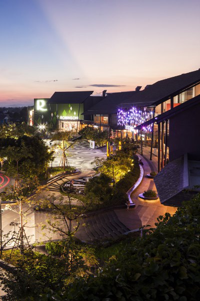 由Chanon Wangkachonkiat事務所設計,購物廣場為顧客提供了一個共享活動空間,設計理念來自于周邊山區等高線地形,一些高差錯落的臺地、路面圖案、形狀起伏的花冢、臺階、座椅及水系,將整個環境營造出自然、生態的共享活動空間。